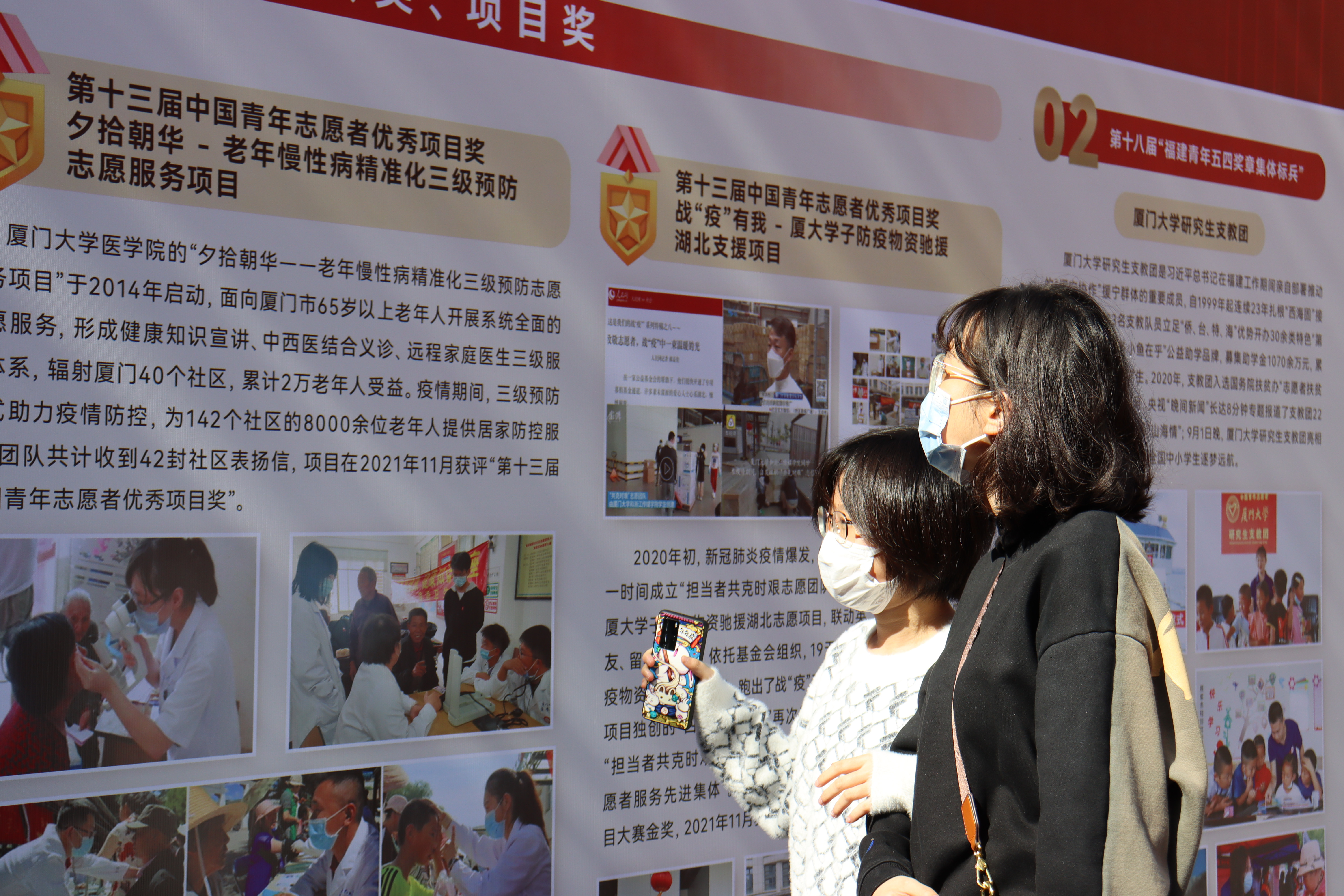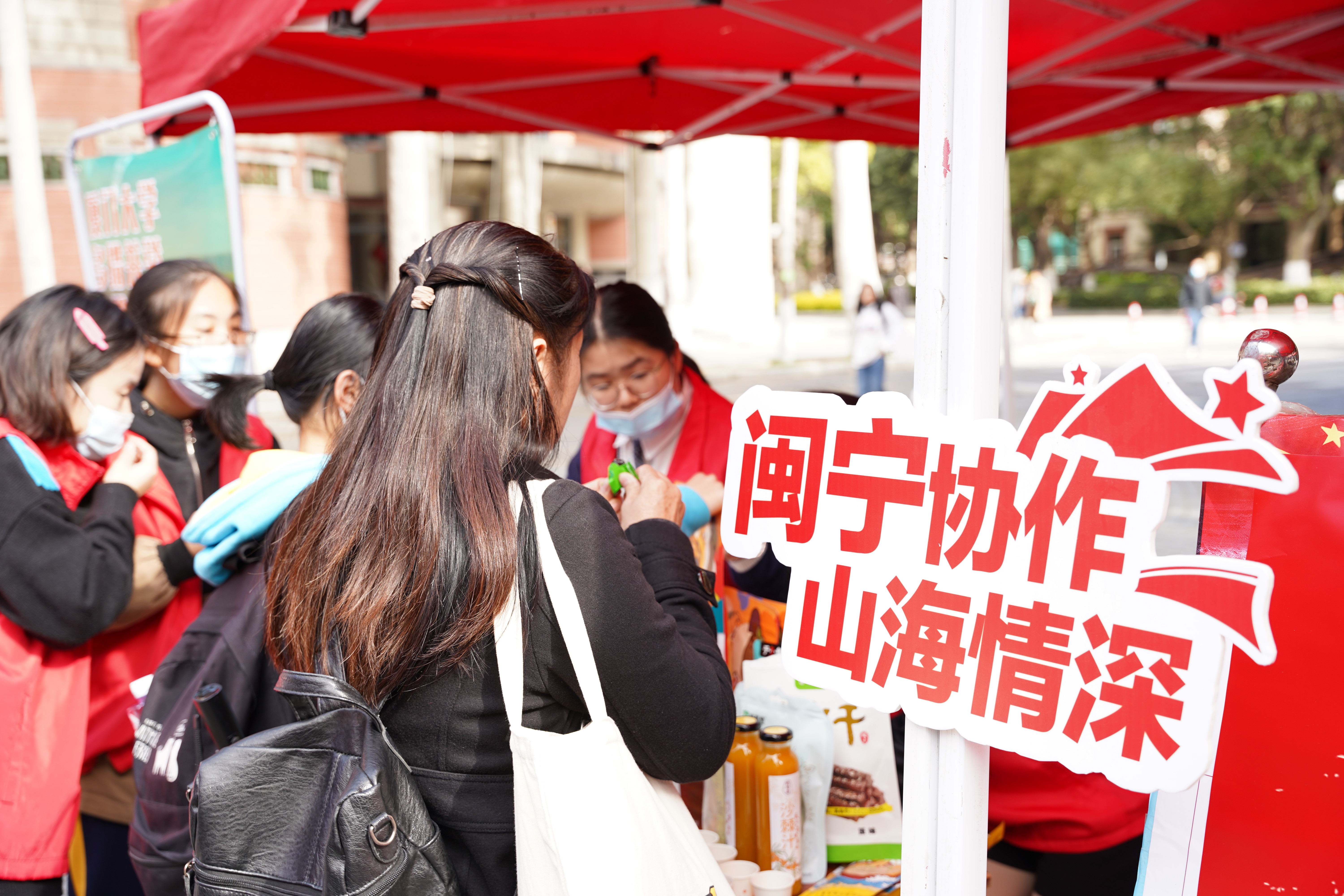 建筑与土木工程学院“十年守望,山海同心——爱心one by one”西部助学志愿服务团队,通过搭建交流平台,号召广大青年志愿者积极参与定向帮扶西部贫困中学生完成学业,在教育帮扶中贡献厦大青年学子的一份力量。管理学院“青选至乡村振兴”志愿服务团队携手宁夏隆隆薯闽宁助残商贸中心,现场开展精准帮扶特色农产品展销活动,共同助力当地产业发展。在互动留言板上,“但行善举,莫问前程”“志愿服务,一生在路上”……一个个暖心的志愿服务故事、一句句真挚的祝福,让参加游园活动的同学们纷纷驻足,拿出手机定格最美时刻。
