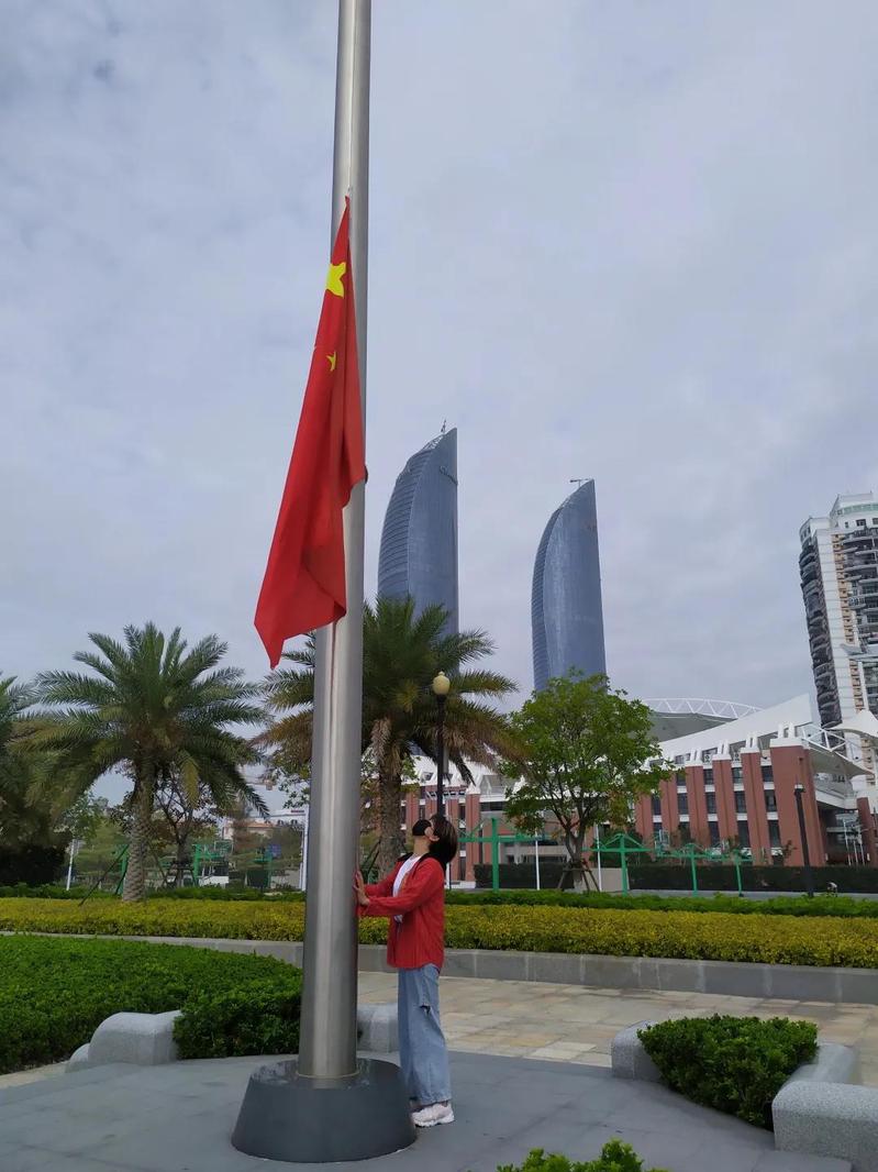 “我会用手机播放国歌,跟着旋律把握升旗的节奏,确保在八点钟前完成升旗仪式。下午五点半再按照要求将两面国旗降下,放回自钦楼。这段时间的志愿活动让我每个周日都过得很有仪式感,也加深了我对国旗国歌的敬重和爱护。”