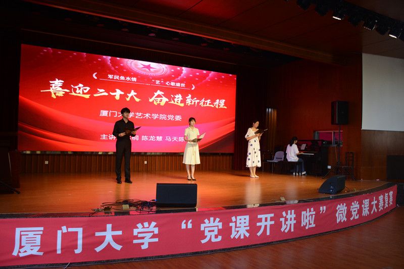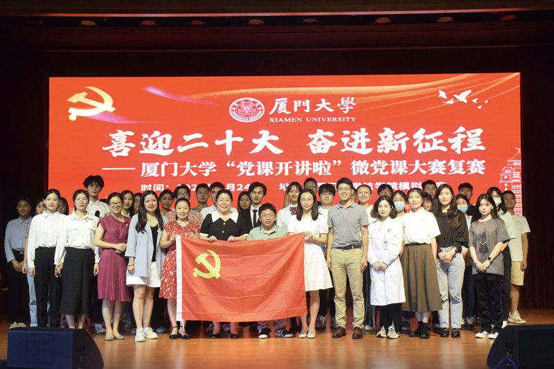 “万泉河水清又清,我编斗笠送红军,军爱民来民拥军,军民团结一家亲一家亲……”6月24日,伴随着悠扬的歌声,“党课开讲啦”厦门大学微党课大赛的复赛拉开帷幕。本次微党课以“喜迎二十大,奋进新征程”为主题,厦门大学基层学院党委初赛遴选出的30支队伍贡献了一场场精彩的微党课,党课主讲人深入浅出、声情并茂地用一首首热血的歌曲、一封封动人的红色家书、一个个鲜活的英雄形象带领大家开展党史学习教育,重温红色岁月。