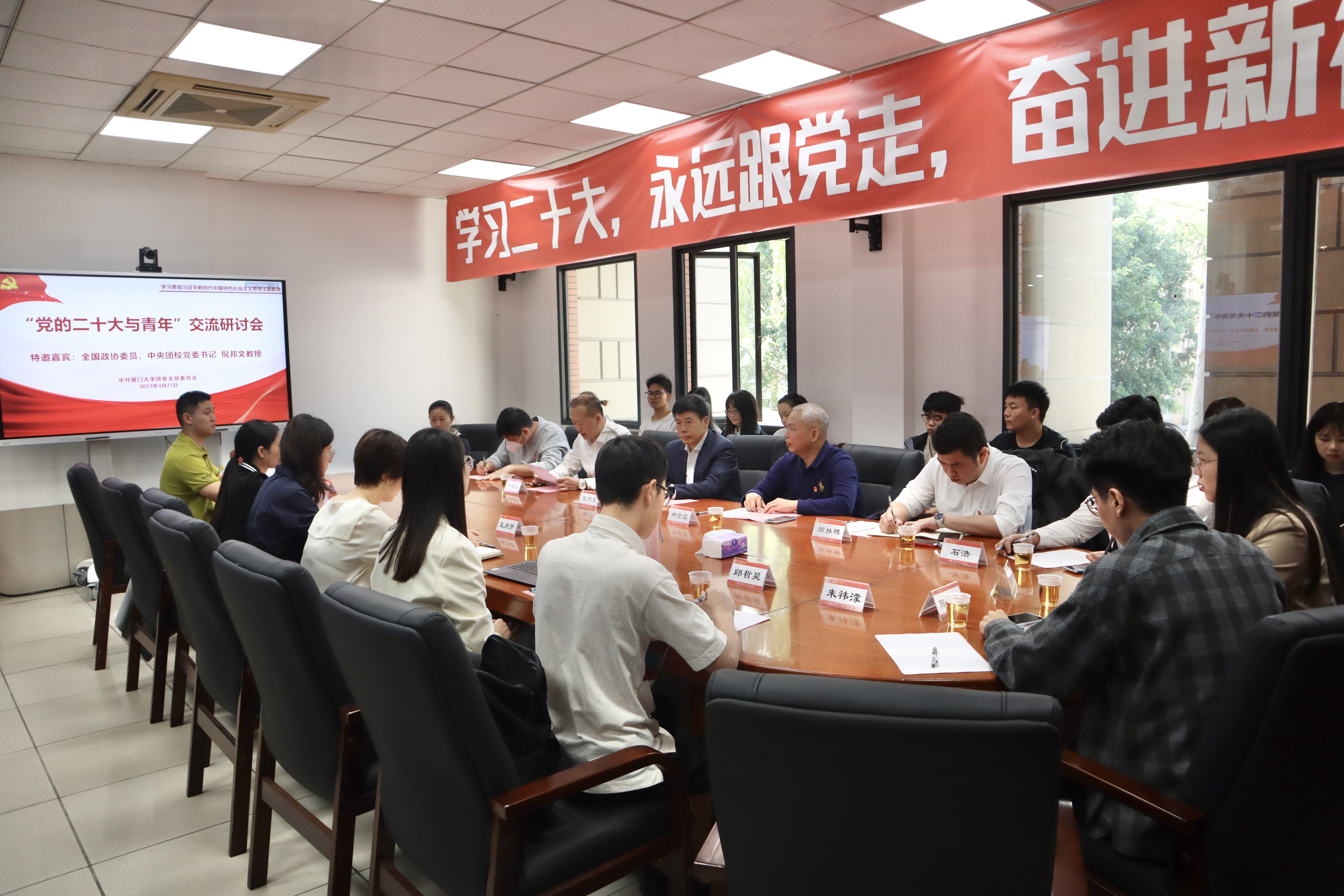 4月27日,校团委党支部举办学习贯彻习近平新时代中国特色社会主义思想主题教育专题研讨会,邀请全国政协委员、中央团校党委书记倪邦文教授与支部全体干部,机关党委、党校代表,校级学生组织骨干代表围绕“党的二十大与青年”开展研讨学习。主题教育第四巡回指导组副组长林金宝出席本次研讨会。
