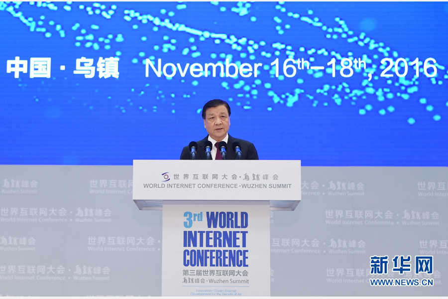 11月16日,中共中央政治局常委刘云山在浙江省乌镇出席第三届世界互联网大会开幕式并发表致辞。 新华社记者 谢环驰 摄