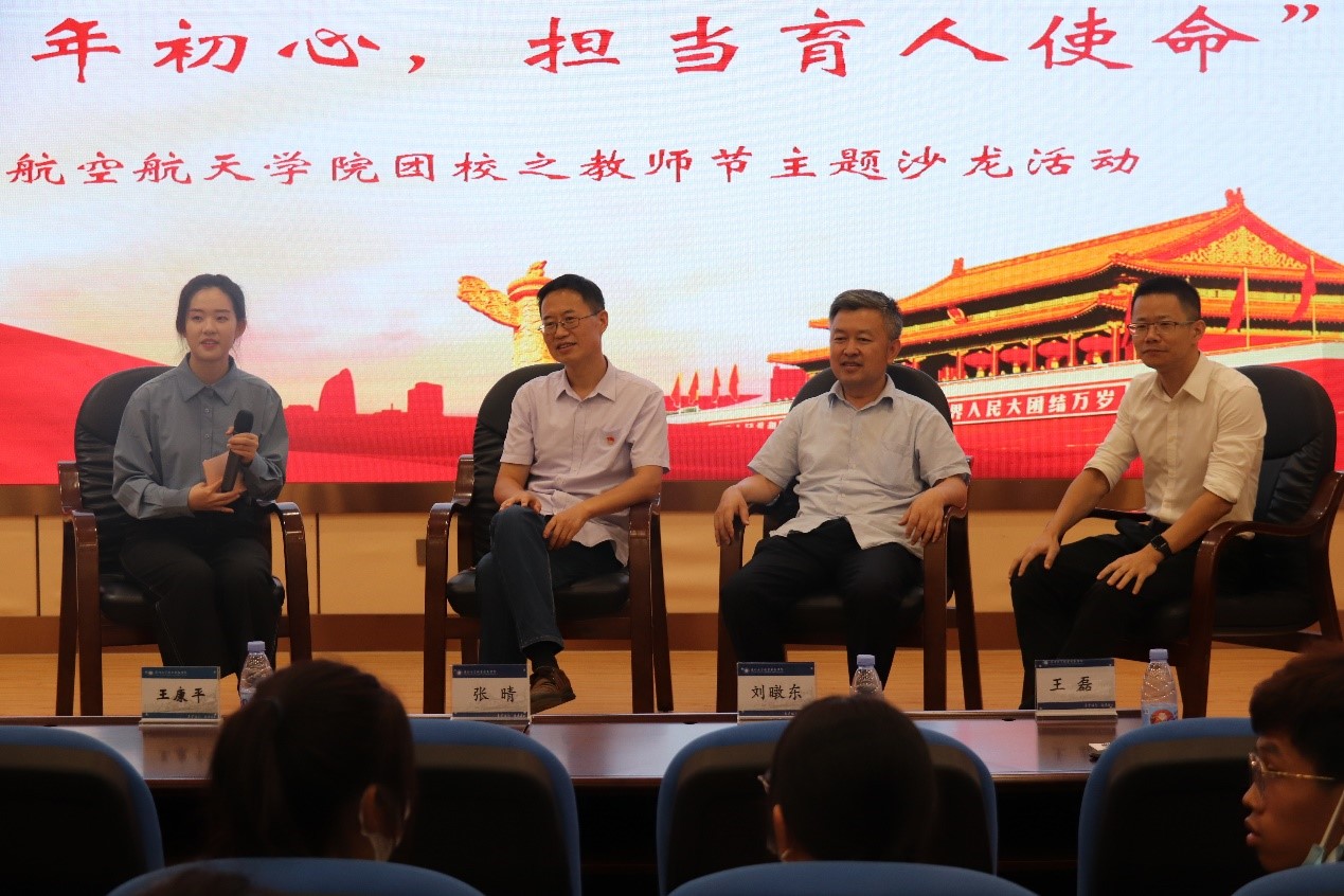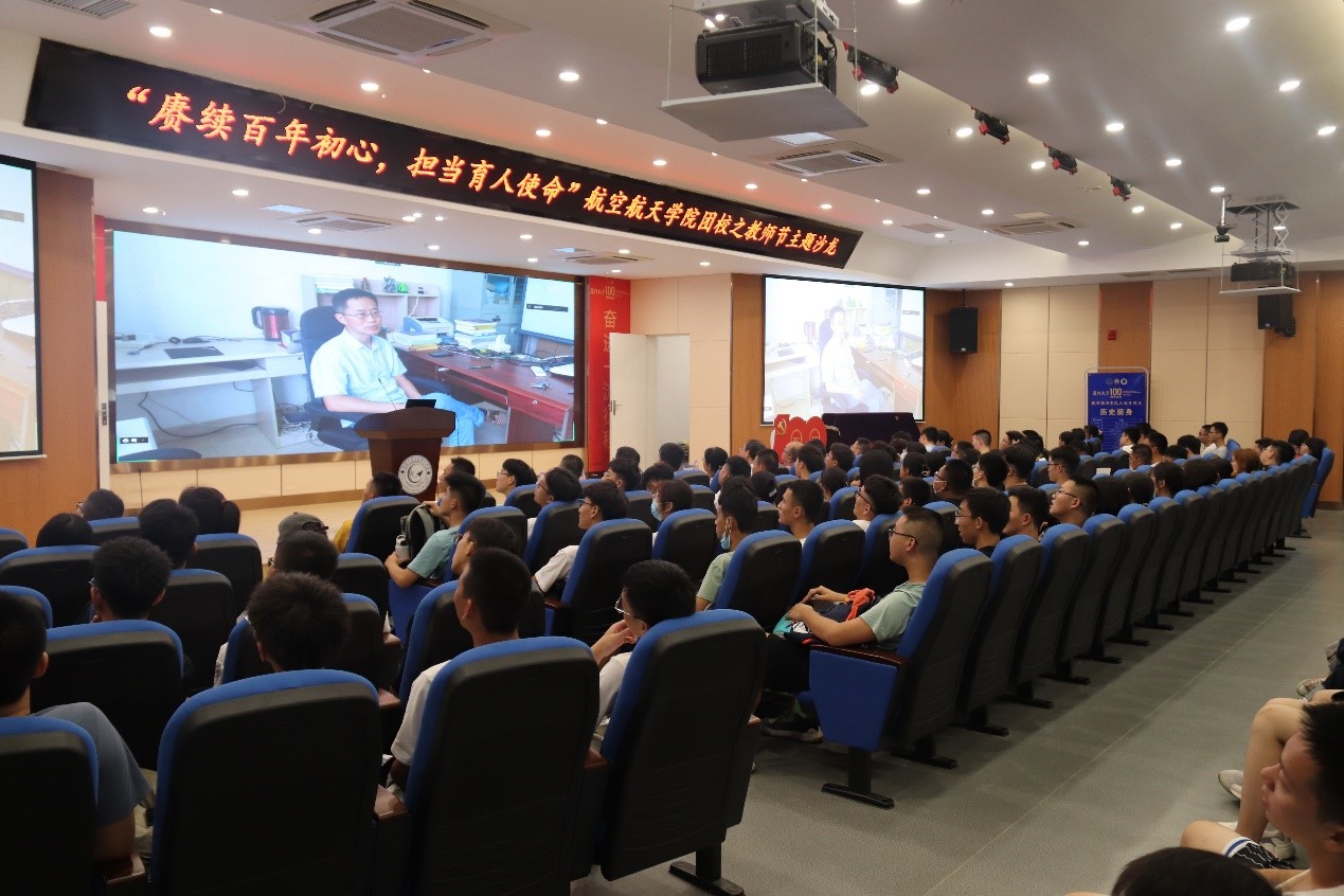 在我国第37个教师节到来之际,为贯彻落实习近平总书记对教师“学为人师、行为世范,当好学生成长的引路人”的指示精神,厦门大学航空航天学院结合新生入学教育特别举办2021年团校之“赓续百年初心,担当育人使命”教师节主题沙龙。院党委书记王康平,院党委副书记张晴、林蔚,飞行器系李沁教授、自动化系刘暾东教授、动力工程系冮铁强副教授、机电工程系王磊副教授、仪器与电气系柳娟副教授,以及学院全体辅导员、2021级全体本科新生参加活动。
