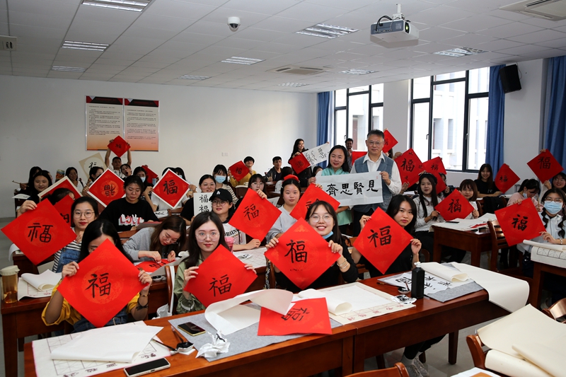 2021年10月25日下午,厦门大学国际中文教育学院/海外教育学院书法研修活动在翔安校区坤銮楼B212举办,此次活动特别邀请了福建省著名书法家吴忍成老师现场指导,吸引众多中外学子前来参加。