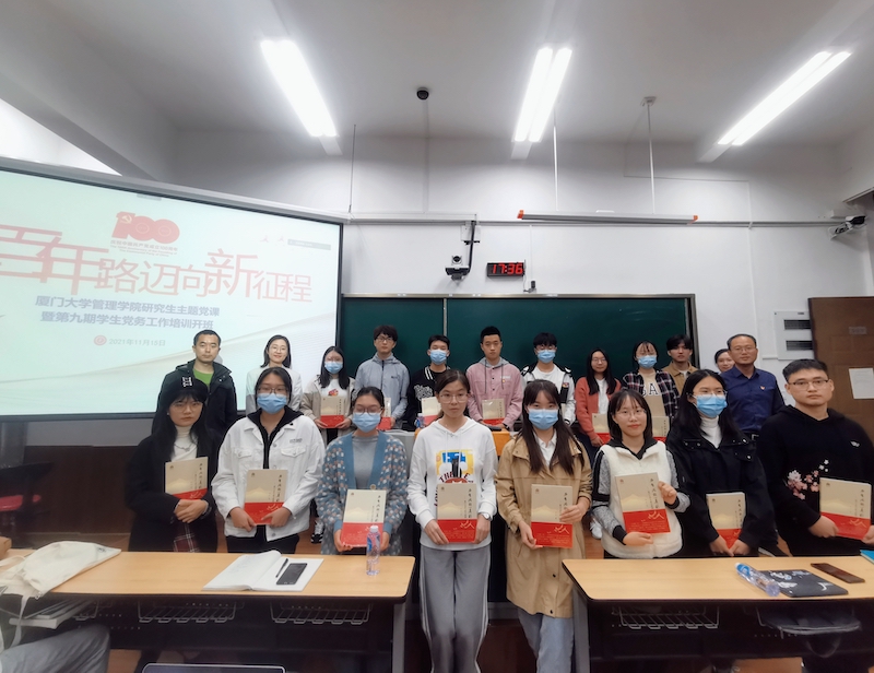 党课结束后,学院为2021级研究生新生党员们赠送《为吾国放一异彩》一书,期望全体党员同志能够承前人优良传统,扎根五湖四海、放歌天南地北、书写好厦门大学与伟大祖国新的篇章。