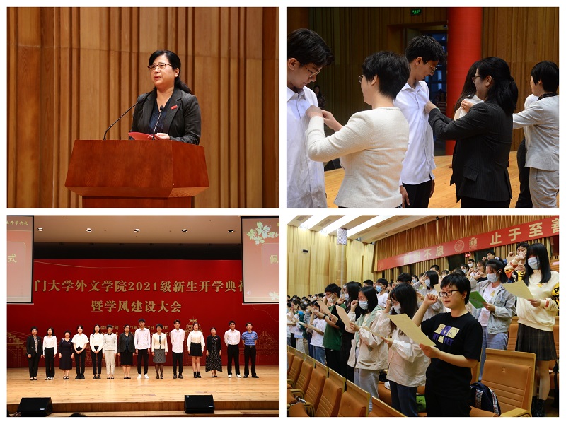 为落实立德树人根本任务,传承厦大百年薪火,推动优良学风建设,欢迎新一届外文学子,11月3日下午,外文学院2021级新生开学典礼暨学风建设大会在科学艺术中心音乐厅举行。闽南师范大学外语学院教授、福建声滔实业投资集团董事局主席、福建省自强助残助学基金会副理事长郑声滔,77级英语专业代表、公共事务学院副教授郑启五,81级英语专业院友、深圳合口味食品有限公司董事长、厦门大学深圳校友会理事长孙小荔,84级英语专业代表、原戴尔中国有限公司人力资源总监陈荣萍,学校党建联络员黄定基,外文学院关工委主任陈端端,学院党委书记陈志伟、院长陈菁等党政领导班子和各系部领导老师出席了本次大会。