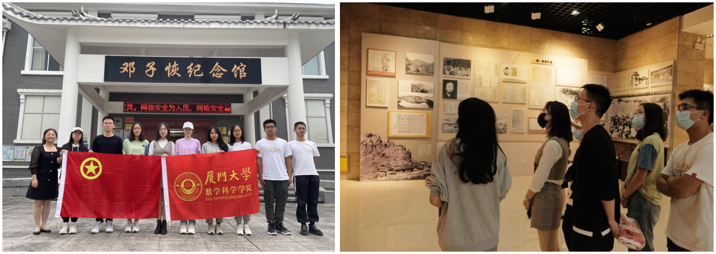 为学习贯彻习近平总书记致厦门大学建校100周年贺信精神,弘扬红色文化,深入开展“四史”学习教育,11月20日、21日,厦门大学数学科学学院团委组织青年学生代表前往龙岩开展“数院先锋 学史践悟”为主题的党史学习教育。学院团委副书记陈淑铌带队,龙岩市新罗区政府办公室副主任、厦门大学挂职干部林智雄指导学习,师生共同参观了闽西工农银行旧址、厦门大学办学旧址、后田暴动遗址、邓子恢纪念馆等。