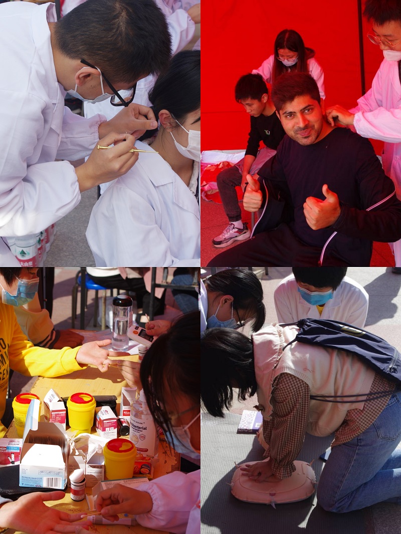 活动现场,志愿者耐心细致地为师生刮痧、推拿、普及急救知识、量血压、测血糖、针灸、号脉、耳贴,并针对每位师生的个人健康状况耐心叮嘱各种注意事项,在饮食、运动等方面提出合理的生活指导。