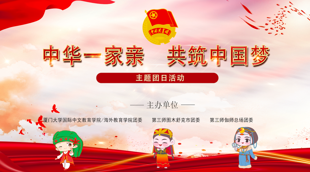 为深入学习贯彻习近平总书记关于加强和改进民族工作的重要思想以及中央、省委民族工作会议精神,贯彻落实习近平总书记致厦门大学建校100周年的贺信精神,大力传承弘扬习近平总书记在福建工作期间关于民族工作的重要理念和重大实践,促进两地团员青年相互理解尊重、相互欣赏包容、相互学习帮助,4月12日下午,厦门大学国际中文教育学院/海外教育学院团委与新疆生产建设兵团第三师图木舒克市团委、第三师伽师总场团委联合开展了“中华一家亲,共筑中国梦”主题团日活动。