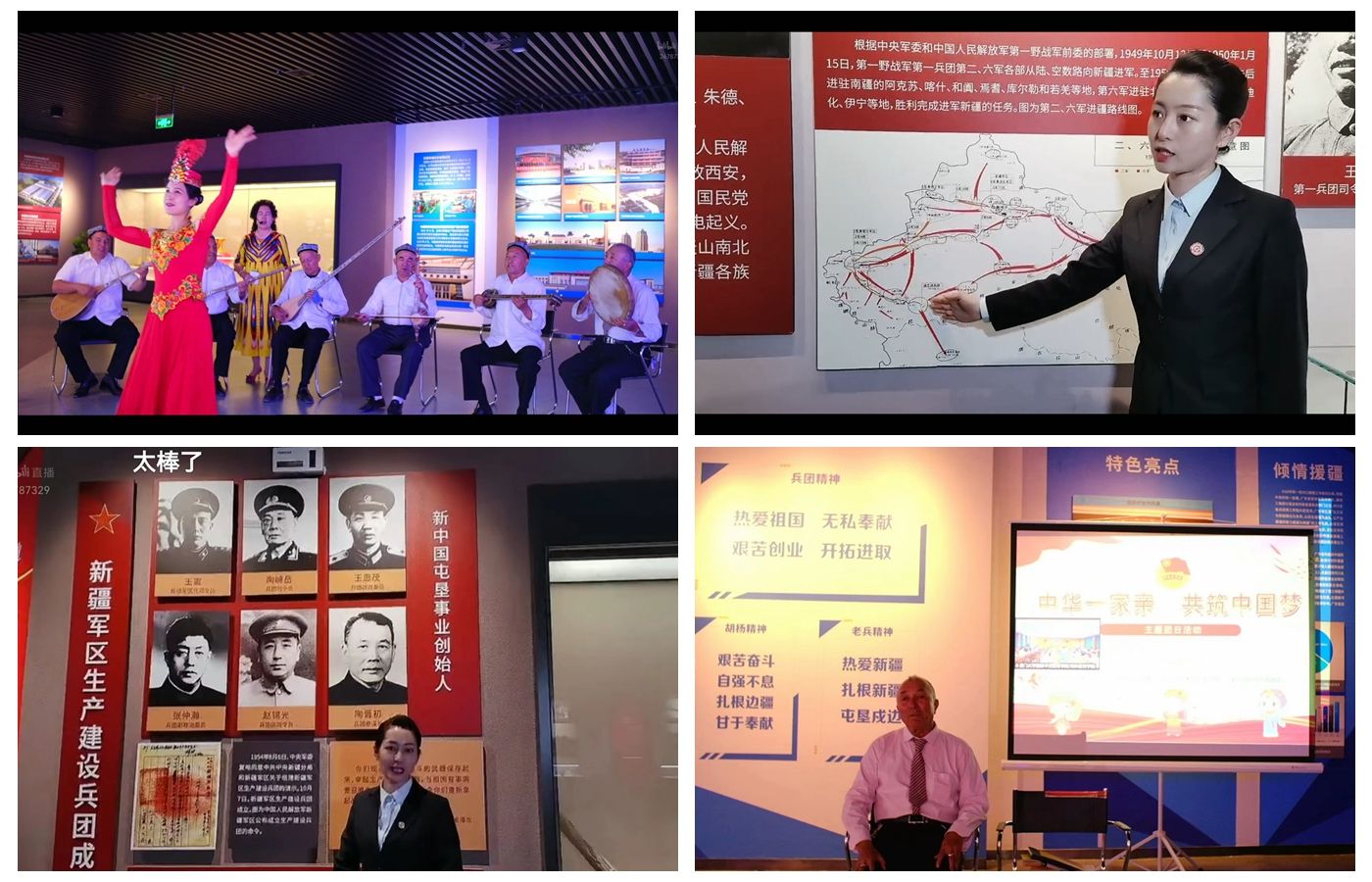 接下来,来自新疆屯垦历史博物馆的讲解员以时间为线索,介绍了新疆的发展历程。通过讲解员的细致介绍,同学们了解到新疆是古丝绸之路上的重要关结点和东西方文明的交汇点,同时也认识到新疆如今取得的成就与兵团的艰苦奋斗息息相关。