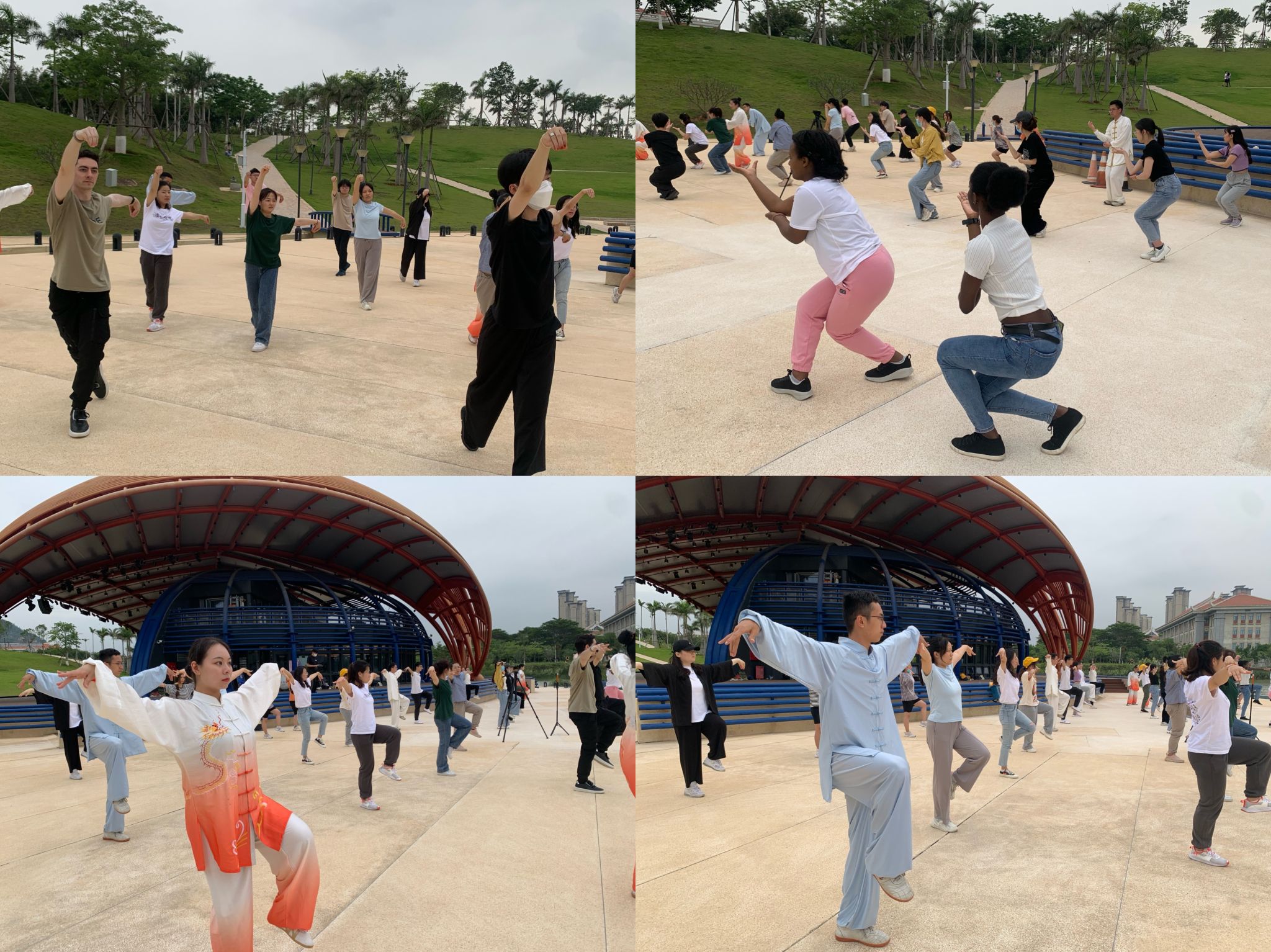 为帮助翔安校区中外学生了解中华传统文化, 5月22日下午,国际中文教育学院/海外教育学院在厦门大学翔安校区学生广场(小巨蛋)举办了中国传统健身气功——五禽戏文化研修活动。应学院肖宁遥老师邀请,厦门大学体育教学部武术教研室主任李仁松副教授担任本次活动教练,厦门大学健身气功队的6名同学担任助教。本次活动采取线上线下结合的方式,近40名中外师生参与线下活动,30多名国际学生参加线上研修。