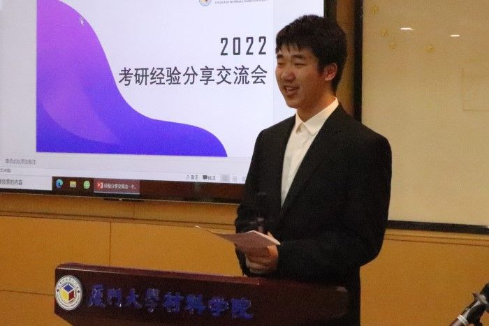 考研到本院生物材料专业的郭净汝从考研的目的、信息的获取、时间的安排、心态的调整等方面给出了自己的建议,并分享了自己的学习资源与技巧。考到西安交通大学材料与化工系的易成详细介绍了考研的具体流程和要点,重点分享了学校和资源选择的看法。余欢考入华南理工大学生物医学工程专业,她介绍了自己的时间与复习安排,同时给出了一些时间管理方面的建议。王江海被北京航空航天大学材料科学与工程专业录取,他介绍了北京航空航天大学的考研要点。考研到本院高分子材料与工程的秦仁通就本校考研提出了自己的建议。考研到浙江大学高分子化学与物理专业的郑腾飞详细介绍了浙江大学考研的具体情况,并重点介绍了自己的初试、复试经验。
