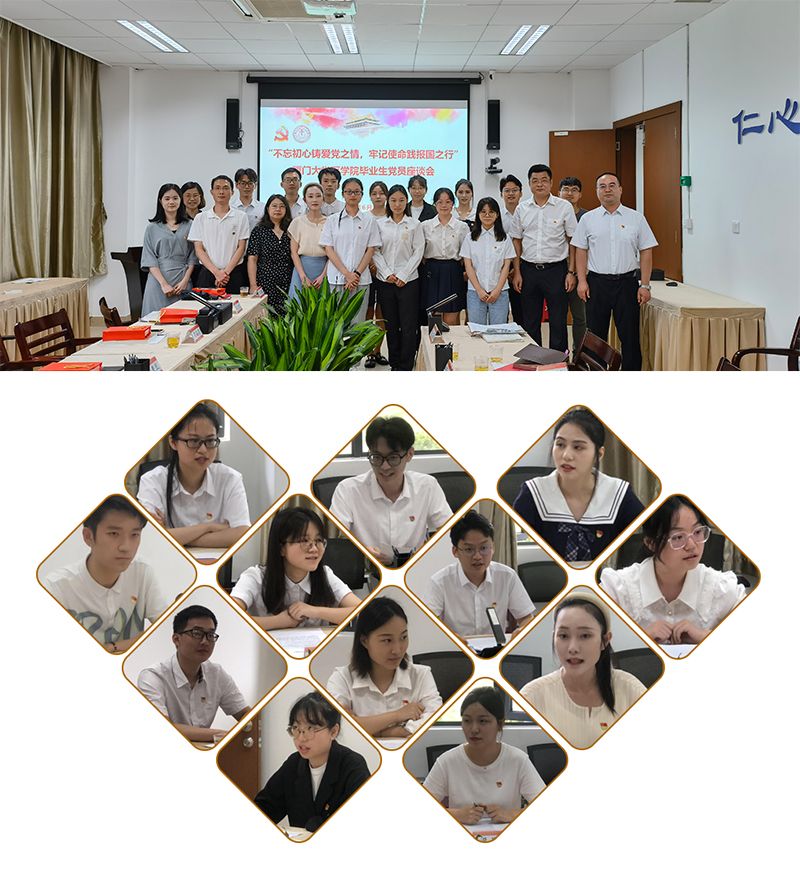 党委副书记何丽苹、王坤钟对在座党员的成长、成才给予了充分的肯定和赞许,希望毕业生党员时刻谨记并传承厦大“四种精神”,以思想自觉引领行动自觉,践行初心,担当使命。毕业生辅导员乐无恙、许温洁、王明辉,党务秘书易佩荣表达了对同学们的祝福和期盼,希望毕业生党员增强社会责任感和使命感,以小我融入大我,勇担青春使命。