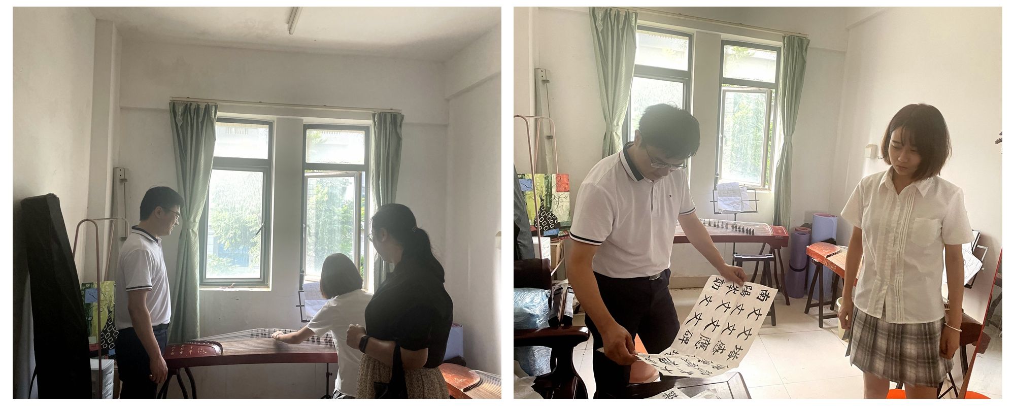 来到国内研究生宿舍,2021级研究生张雯钰正在练习古筝。她即将赴泰国皇太后大学孔子学院担任国际中文教师志愿者,希望利用暑假提高自己的中华才艺水平及授课能力。林明华对此十分赞赏,并表示:“学院始终将传承和弘扬中华优秀传统文化作为工作重点,相信同学们能够牢记传播中华文化和中国精神的使命与担当,向世界讲好中国故事,成为中国形象的最佳代言人。”