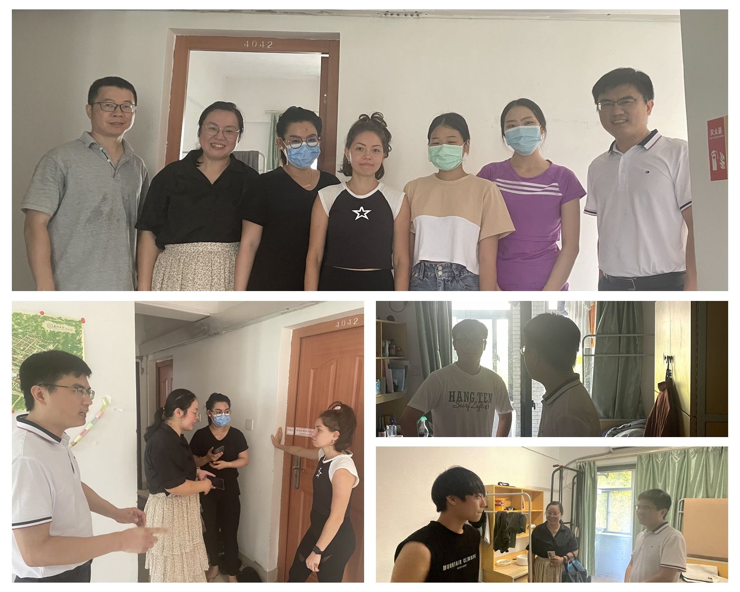 为落实学校暑期工作安排,加强留校学生安全教育,7月25日下午,国际中文教育学院/海外教育学院党委副书记林明华、团委书记陈艺新、辅导员关丽文、兼职辅导员许鸿滨走访了中外学生宿舍。