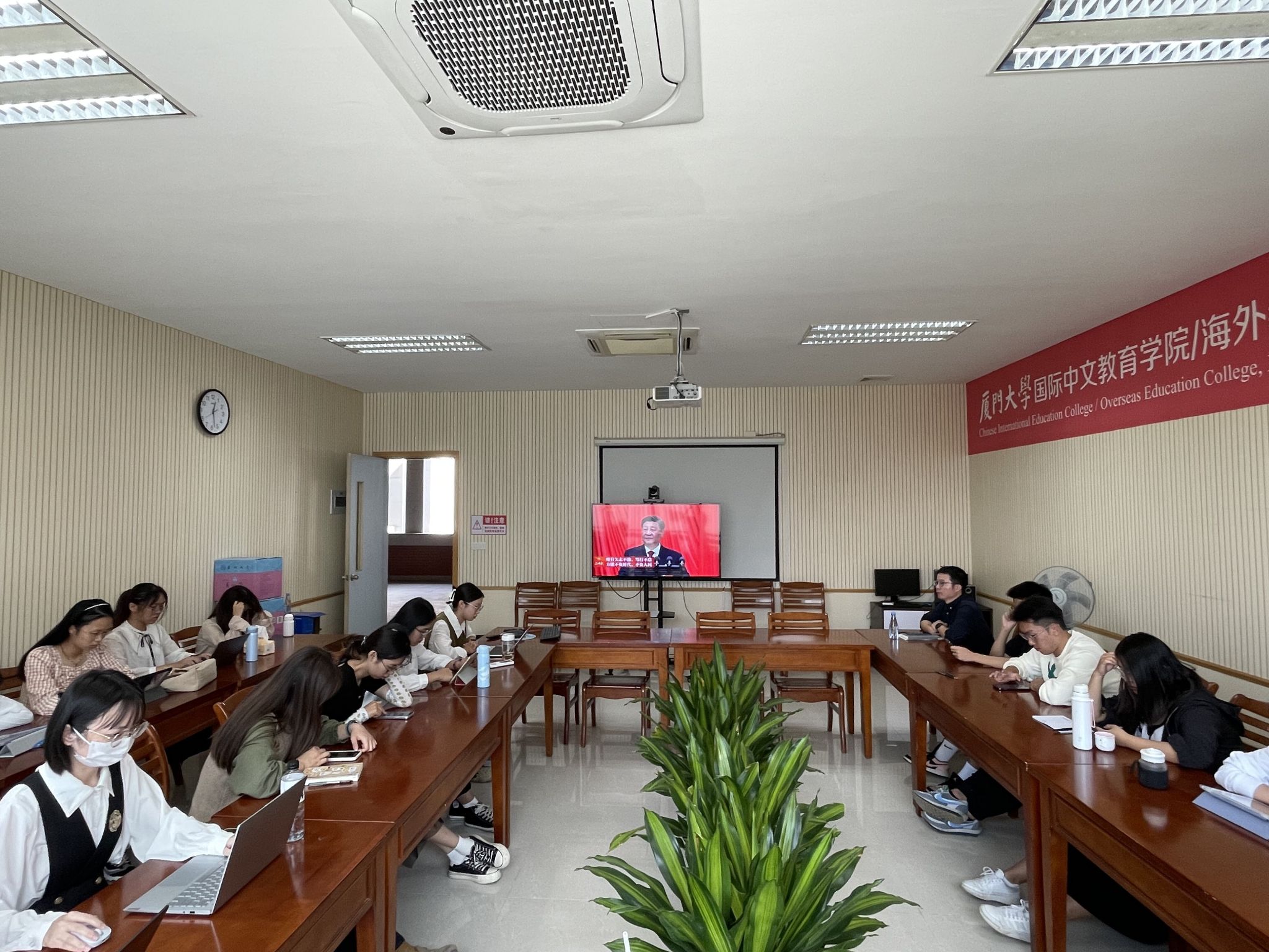 为深入学习宣传贯彻党的二十大精神,加强我院学生骨干队伍建设,提高学生工作队伍的思想政治素质和工作能力,11月18日中午,国际中文教育学院/海外教育学院研究生会组织召开党的二十大精神集中学习会。院研究生会全体成员,2022级研究生党支部委员、团支部委员和班委等学生骨干参加学习。院研究生会执行主席于思佳主持会议。
