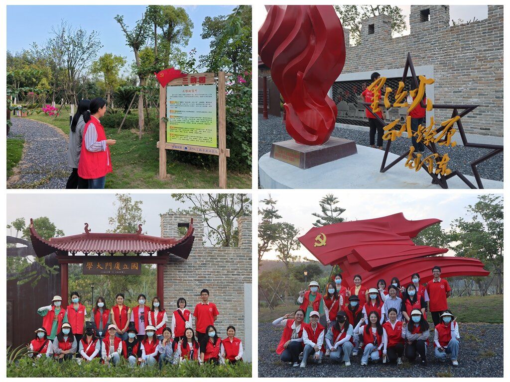 八闽园取名自福建旧称“八闽”,园内种植了福建各地特色植物,还有古田会议纪念墙、三明红色革命根据地纪念碑等红色建筑,是一个集科研、育人、观光、生态于一体的多功能园区。活动结束后,同学们特地参观了这些红色文化景观,并结合相关文字解说,深入了解八闽园背后蕴藏的福建红色文化。