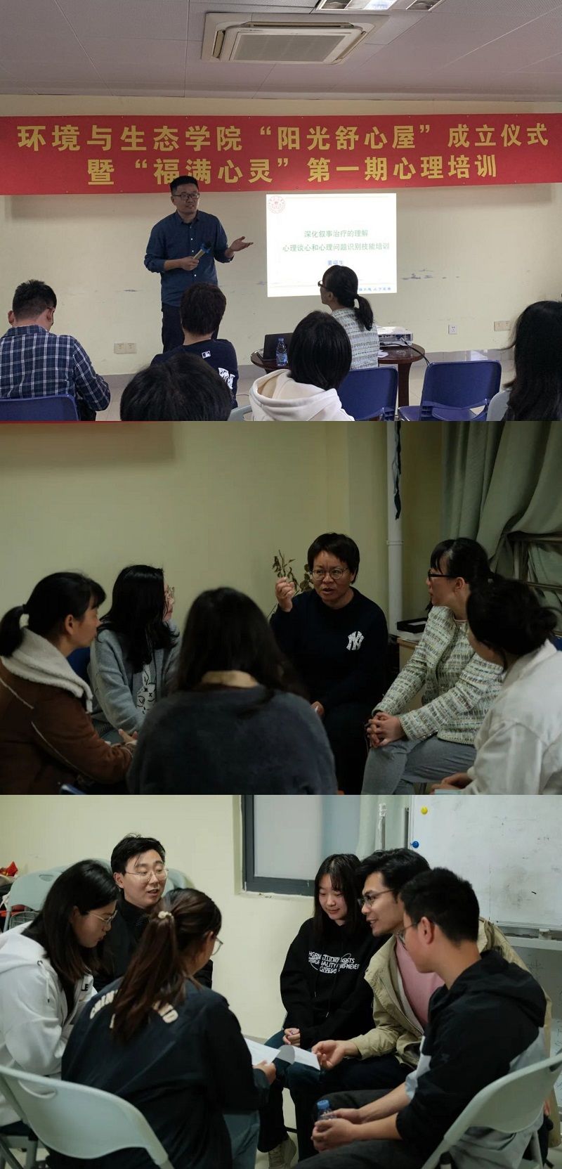 3月7日中午,环境与生态学院在翔安校区学生活动中心A207举行“阳光舒心屋”成立仪式暨“福满心灵”第一期心理培训。能源学院党委副书记罗俊峰,翔安校区学生办石义凯、公寓办杨凯旭、团工委朱祎濛、生命科学学院辅导员邹钰珏等南光、南安楼栋工作组成员,环境与生态学院辅导员、本研各班及研究生各课题组心理委员参与此次活动。本次培训由环境与生态学院党委副书记刘莉颖主持。
