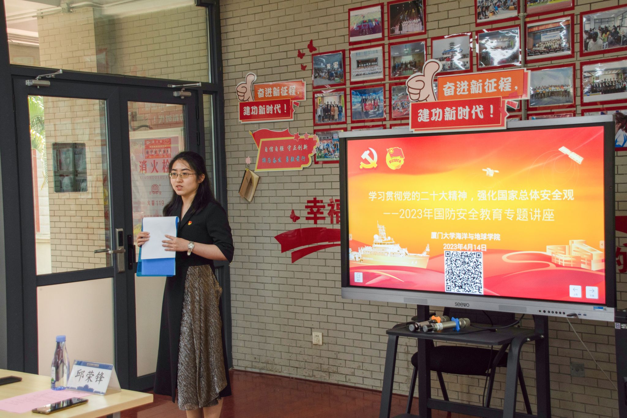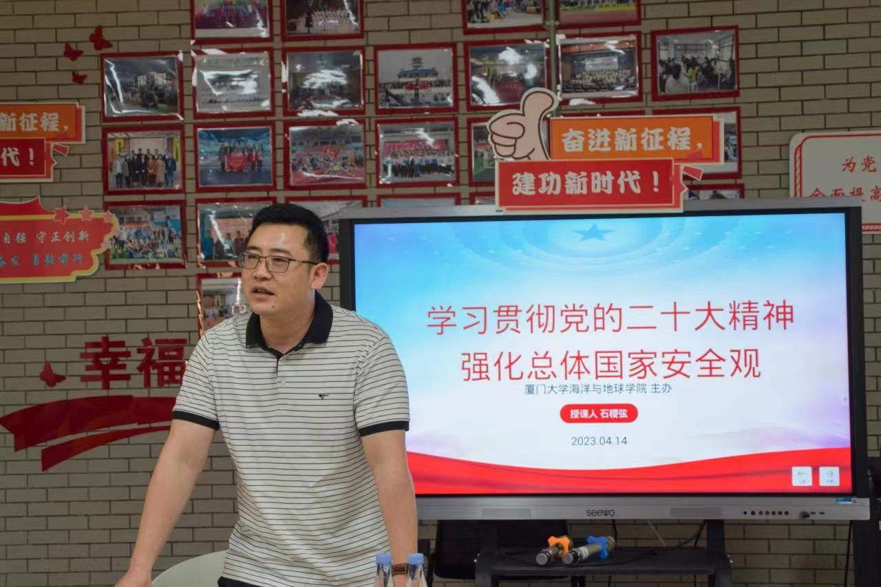 4月15日是第八个全民国家安全教育日。为贯彻落实习近平总书记关于国家安全工作的重大部署,深入学习宣传总体国家安全观,切实提高师生国家安全意识,4月14日中午,学院邀请了厦门市国防教育讲师团讲师石稷弦于海洋之家“一站式”学生社区开展主题为《学习贯彻党的二十大精神,强化总体国家安全观》的讲座。院党委副书记邱荣锋、党委组织员侯佳君、团委副书记张露月及46名学生党员、团员参加讲座。党政辅导员王冠菲主持讲座。