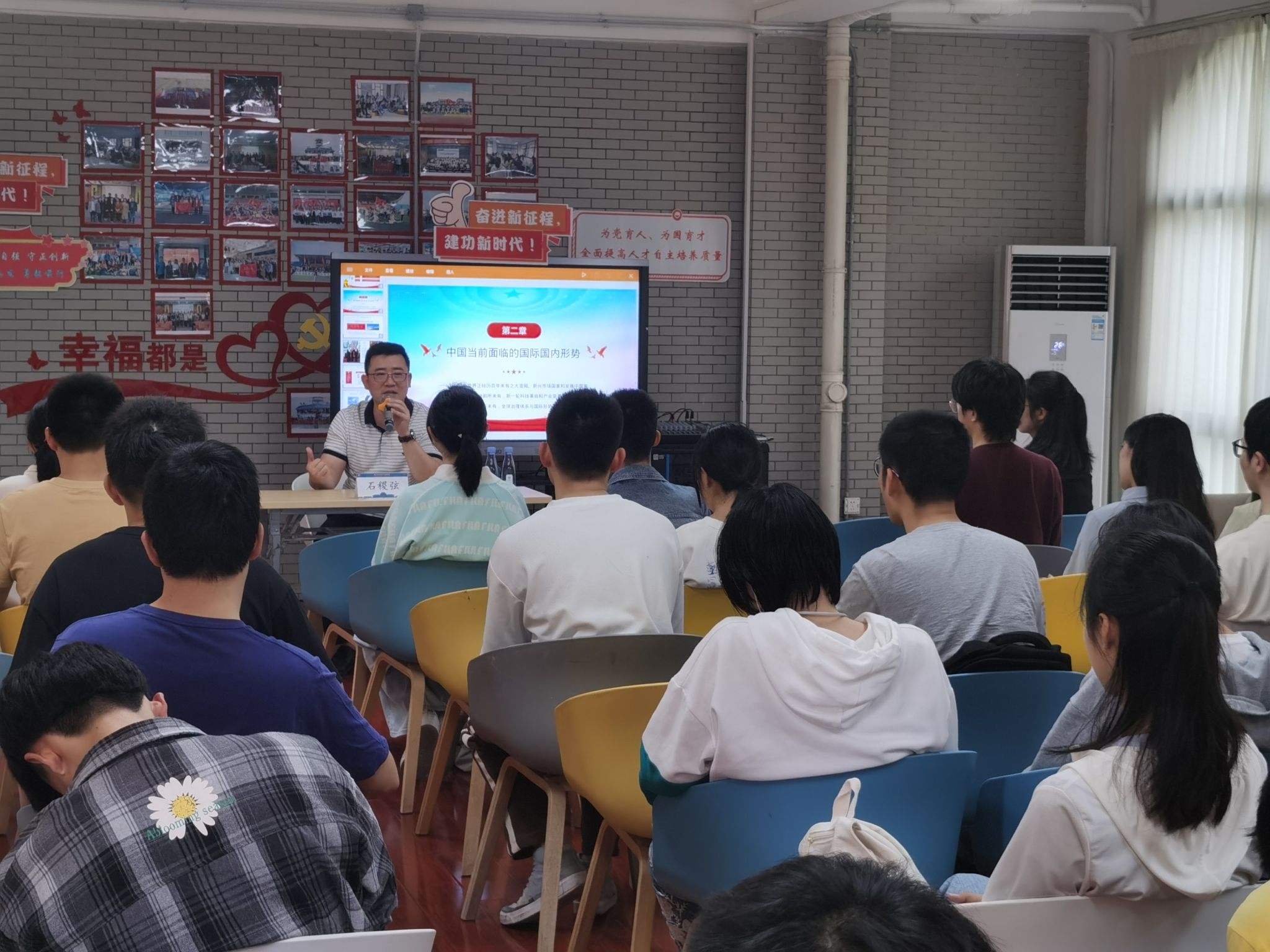 在接下来的互动交流环节,同学们踊跃提问,就国防支出比例、国内外国防教育的异同、台海关系等话题与老师进行互动探讨。石稷弦耐心解答的同时,引导同学们要以全面、客观、积极的视角看待国家安全战略,居安思危,切实维护国家安全和利益。