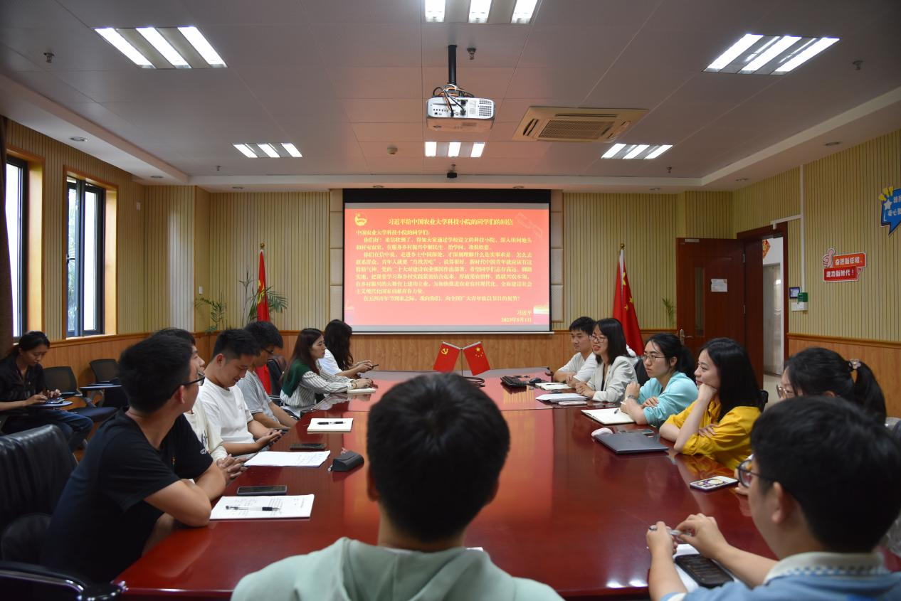 近日,中共中央总书记、国家主席、中央军委主席习近平给中国农业大学科技小院的同学们回信,提出殷切期望,并在五四青年节到来之际,向全国广大青年致以节日的祝贺。为深入学习回信精神,5月4日下午,我院在希平楼C2-207会议室组织专题学习座谈会,并邀请曾任福建省宁德市大黄鱼科技小院院长的2019级海洋生物技术专业博士生王家迎同学做主题分享。学院团委书记陈启妍、团委副书记张露月、辅导员张莉莉和王冠菲,来自生化遗传研究生党支部、底栖生物研究生党支部、本科生党支部的党员代表、以及青年学生和少数民族学生代表参加座谈。座谈会由团委副书记张露月主持。