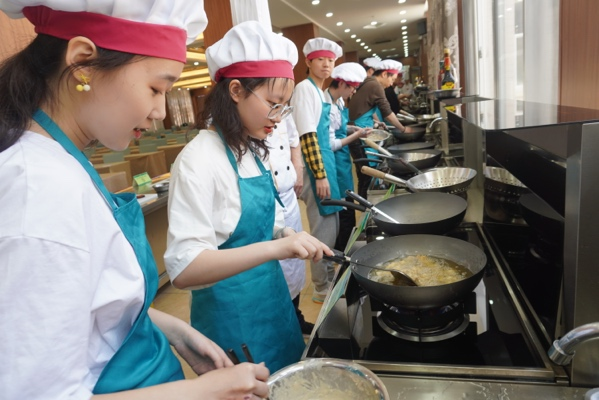 有“为”才有“味”,美食让人喜悦,而比赛中技能的提升、团队的协作配合、辛勤付出后的收获同样让人欣喜。比赛过后,师生们围坐在一起品尝美食,并一同制作春季传统菜肴春卷。