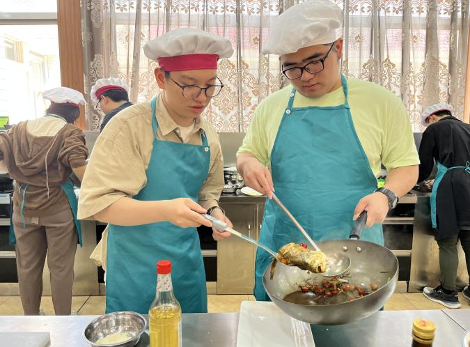 闽菜是中国八大菜系之一,以清鲜香脆为特点,注重调汤估料,口味清淡,酸甜适宜,中西合璧。各组队员在指定菜单中选择一道闽菜进行制作,洗菜、切菜、调料、下锅等过程全部由组内成员齐心协力完成。