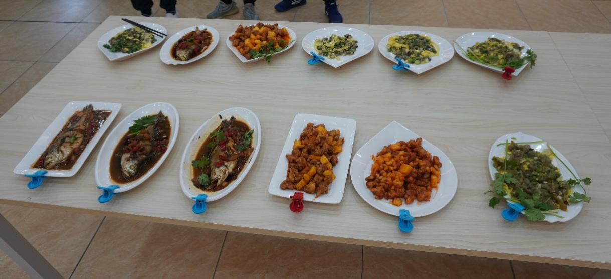 刀落砧板的“咚咚”声、食材入油的“哗啦”声、冷水受热的“咕嘟”声为活动奏响了美妙的背景音乐,将比赛的气氛逐步推向高潮。当肉类的油脂香气从煎锅内溢出,当酱色与油光覆满在翻炒的肉片上,当食盐与香醋混着热油被淋入锅底激发出酱料的香味,在场的同学们都深深地感受到劳动所带来的收获与快乐。菜品全部制作完成后,主厨对同学们的菜品进行点评,并与在场师生一同品尝投票,评选出一、二、三等奖。