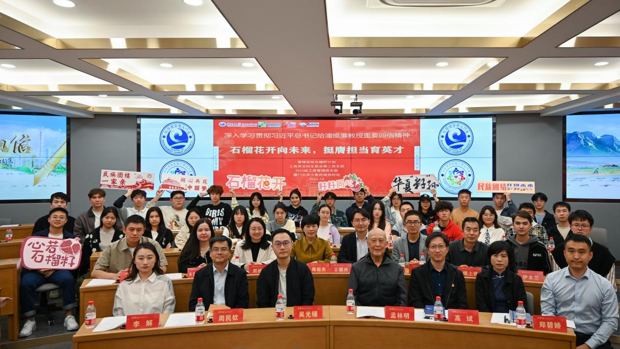 2023年12月7日下午,为推动团员和青年主题教育扎实有序开展,管理学院工商类本科生联合第二党支部、2022级工商管理团支部、学院“石榴籽”计划学生骨干与厦门大学少数民族预科班在嘉庚一504联合开展“石榴花开向未来,挺膺担当育英才”主题联学和学科探索活动,重温习近平总书记给潘维廉教授重要回信精神,深入学习习近平总书记关于加强和改进民族工作的重要思想,进一步铸牢中华民族共同体意识,在奋楫笃行中讲好中国故事、勇于挺膺担当。