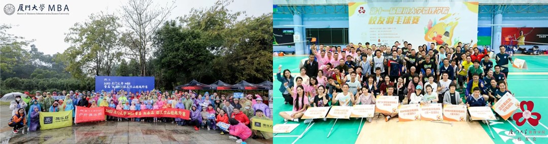 学院面向教职工、校友精心组织趣味运动会、象棋比赛、户外素质拓展、校友羽毛球赛等形式多样、内容丰富的体育活动。2月5日,厦门大学MBA首届“凯乐石”杯天竺山轻越野赛于海沧天竺山风景区完美收官。来自省内各地共111位MBA师生校友无惧风雨,肆意奔跑。12月10日,第十一届厦门大学管理学院校友羽毛球比赛在厦门五缘湾运动馆举行,百余名校友、师生齐聚一堂,同场竞技。徒步、越野、球赛、潜水、登山、素拓……品类丰富的运动项目不仅展示了管院师生校友热爱生活、敢拼爱拼的昂扬姿态,也打造了切磋技艺、交流经验的平台。