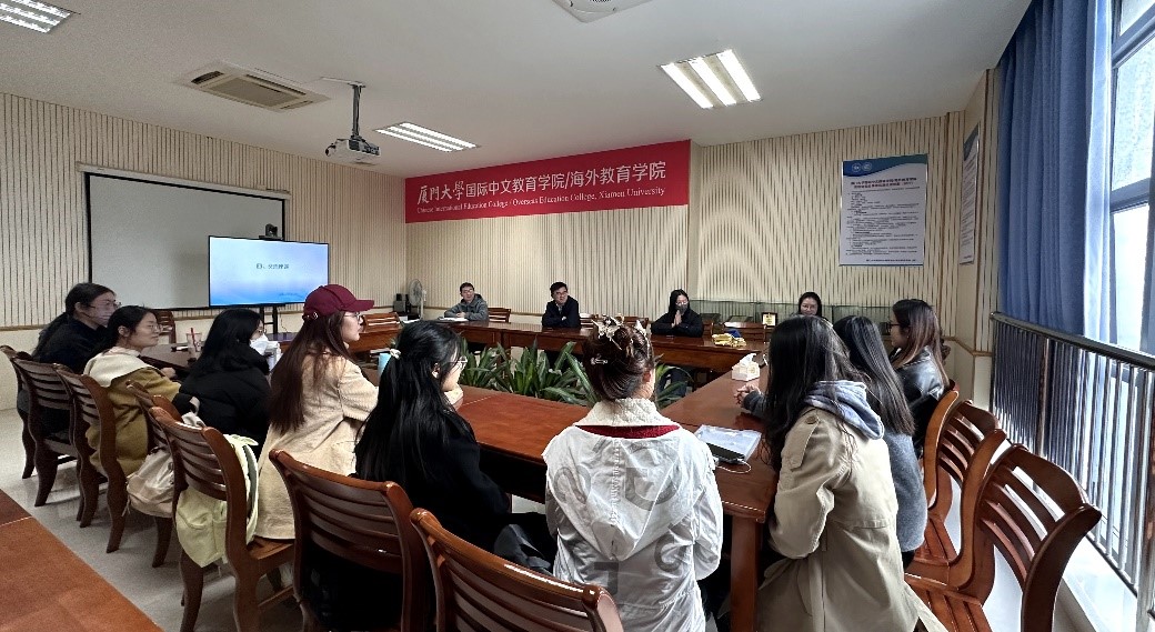 1月4日下午,国际中文教育学院/海外教育学院在坤銮楼B409会议室举行国际中文教育志愿者出国行前座谈会。学院党委书记范丽、党委副书记林明华、团委书记陈艺新,以及志愿者代表参加会议。本次座谈会旨在为即将远赴新西兰的国际中文教育志愿者们强化责任意识和安全意识,引导同学们筑牢信念之魂、主动挺膺担当,为即将开启的国际中文教育征途保驾护航。