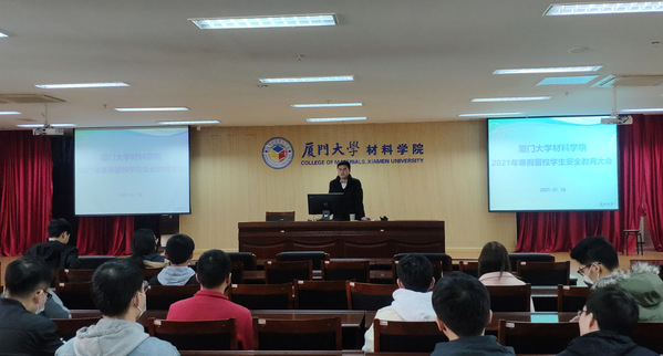 为增强学生安全防范意识,提升学生自我保护能力,1月18日下午,材料学院在圣诺楼201报告厅召开了2021年寒假留校学生安全教育大会。材料学院团委书记林明华分三批次组织全院寒假留校学生进行全面系统的安全教育。