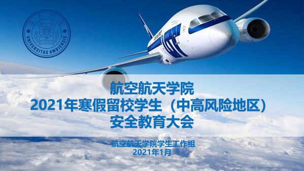 2021年寒假来临,根据学校发布的《关于做好2021年寒假春节期间新冠肺炎疫情防控工作的通知》、《关于做好2021年寒假期间相关工作的通知》、《学生错峰离返校和假期健康管理工作安排》、《关于做好2021年寒假期间学生公寓相关工作安排的通知》等文件精神,结合学院2021年寒假留校学生实际情况,航空航天学院学工组紧张有序开展学生离校留校相关工作,并于1月15日召开留校学生安全教育大会。会议由学院团委副书记水永生主持,学院全体辅导员和留校学生参加会议。
