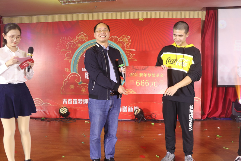晚会穿插互动游戏环节,“踩气球”和“爱的抱抱”两个互动游戏,带领观众参与到晚会中,现场氛围火热非凡。同时晚会全程开放弹幕互动通道,实时传递观众的热情与心声,也加强了观众的参与感。最终的大奖——新年梦想基金由2020级新生获得。
