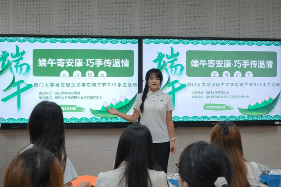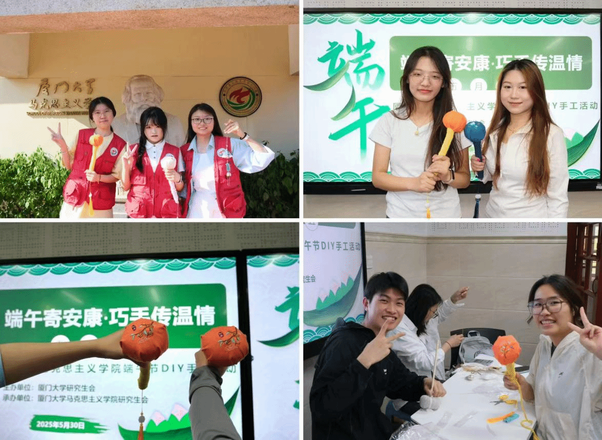 为弘扬中华优秀传统文化、深化劳动育人实效、建设“温暖集体”,5月30日下午,由厦门大学研究生会主办,马克思主义学院研究生会承办的“端午寄安康·巧手传温情”端午节手作体验活动在囊萤楼顺利开展。“端午寄安康·巧手传温情”端午节手作体验活动。活动吸引了全校上百名学生报名参加,学院师生也积极参与活动。