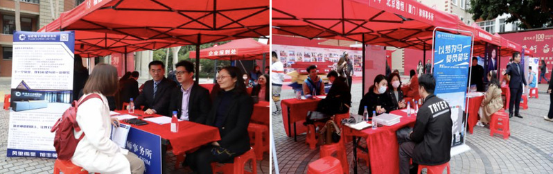 为积极响应教育部《关于做好2021届全国普通高校毕业生就业创业工作的通知》以及共青团中央、全国青联《关于深入实施“千校万岗”大中专学生就业精准帮扶行动的通知》,帮助2021届毕业生更加充分更高质量就业,拓宽在校学生就业实习平台,12月15日,厦门大学2020年法学专场就业、实习招聘会在三家村广场举办,来自全国各地的近四十家用人单位齐聚现场,吸引近千名学生参加。