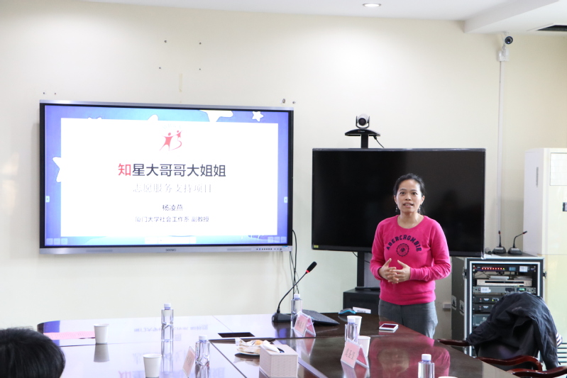 杨凌燕副教授介绍了带领社会工作研究生团队所开展的“知星大哥哥大姐姐”自闭症志愿服务支持项目,希望通过共建实践研究基地促进大学生志愿者在爱心助残的志愿服务项目中获得科学研究的专业滋养和更有力的成长。
