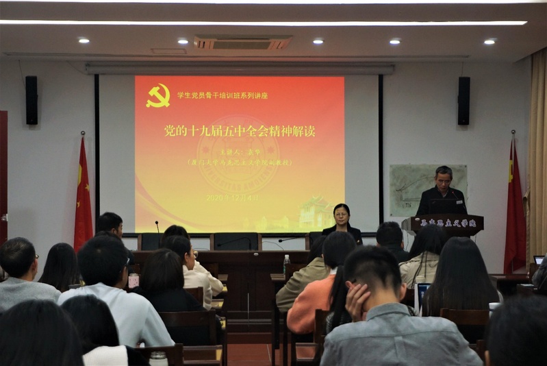 为引领学生党员深入学习贯彻党的十九届五中全会精神,2020年12月4日晚,学院在囊萤楼216会议室开展了以“十九届五中全会精神解读报告”为主题的学习讲座。讲座邀请马克思主义学院袁华副教授作主讲。讲座由马院党委书记侯利标主持,学生党员骨干及硕博新生党员参加学习。