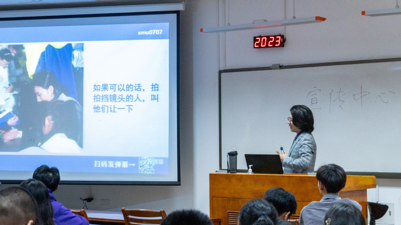 随后,郭宸就内容和运营两个层面进行了经验分享。在内容层面,郭宸认为首先要找好选题,可以从社会热点、院史校史、个人兴趣、小组讨论中发现能够实现的、值得去做的选题,保持敏锐的嗅觉。同时,宣传工作者还应肩负起及时准确宣传、避免宣传工作缺位的责任。其次,在文字撰写上,郭宸表示可以多利用采访获取第一手信息,在采访稿的基础上完成文案撰写,再进行排版。最后,在照片拍摄上,郭宸认为拍照前应先思考需要什么样的图片、什么样的图片必不可少、什么样的图片有特色。除此之外,郭宸还介绍了相机种类、照片参数及构图方法等专业知识。