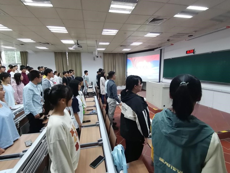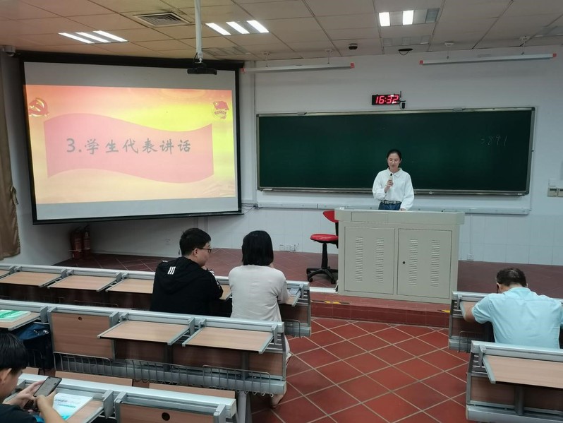 仪式在庄严的国歌中开始。组织部成员胡浩渊详细介绍了本次党团学习实践活动月的活动安排。在本次学习月,所有团员将围绕“十九届五中全会”展开一次理论团课,并通过现场学习、读书分享、党团知识竞赛等形式进行实践学习。