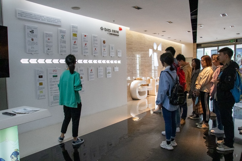吉比特公司一早就安排车辆到厦大海韵园接送学院师生,前往公司进行参观。刚进门,同学们就发现公司严格执行着疫情防控规定,需要进行测温、核验后才能进入。首先,人力资源管理经理郑松月带领大家参观了吉比特二楼展厅,为大家详细介绍了公司概况、发展历程以及品牌文化。接着,大家参观了公司的党支部展厅和会议室,了解到公司目前有在进行环境保护、公益慈善、爱心助学、精准扶贫等党支部建设工作,并学习了企业党支部建设的经验。