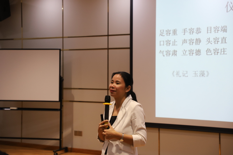 在传授聆听谈话礼仪时,邱老师要求各位同学在聆听时要专心致志、抓住重点、主次分明;在与面试官交谈时应诚恳真实、有问必答、微笑大方且言语正式,并且向面试官表达自己对面试公司的充分了解和入职的渴望。互动环节时,学生们积极提问,现场气氛热烈。
