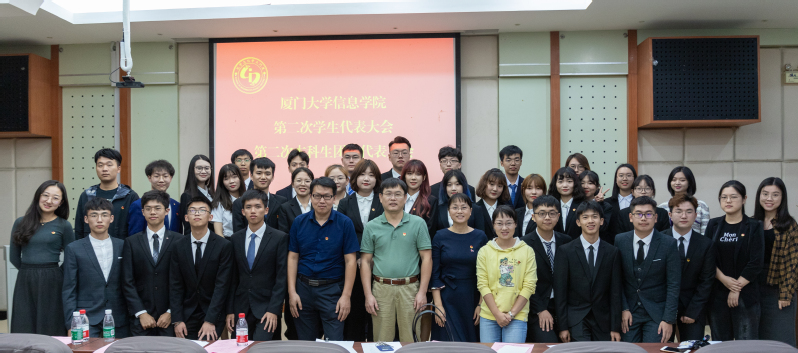 2020年10月25日,厦门大学信息学院第二次学生代表大会、信息学院第二次本科生团员代表大会在海韵教学楼504报告厅顺利召开,信息学院党委副书记郑镇锋、团委书记唐腾凤、团委副书记蔡胜男、全体本科生辅导员、厦门大学第五十一届学生委员会主席团代表、其他院系学生委员会代表、信息学院第一届学生委员会成员、信息学院第一届本科生团总支委员及来自全院各系各年级的本科生团员代表等出席了此次大会。本次大会由信息学院第一届学生委员会主席团成员、2017级软件工程系本科生王鑫主持。
