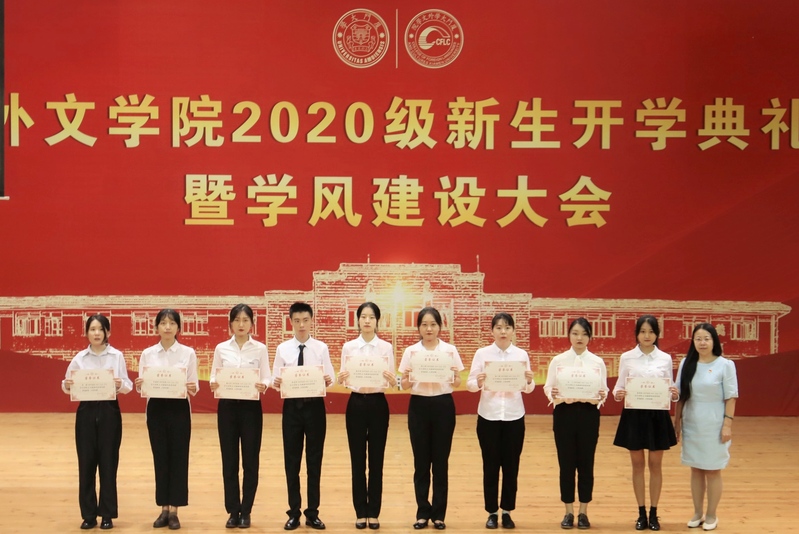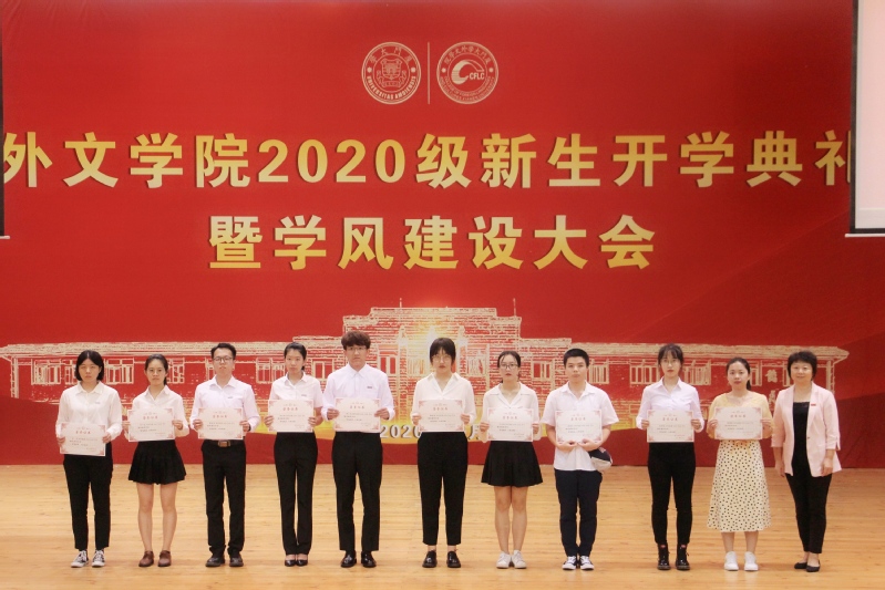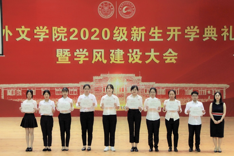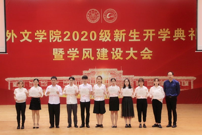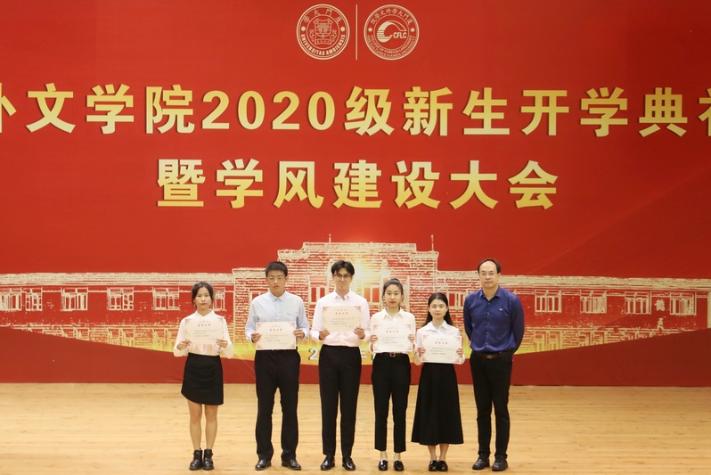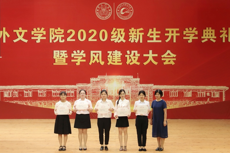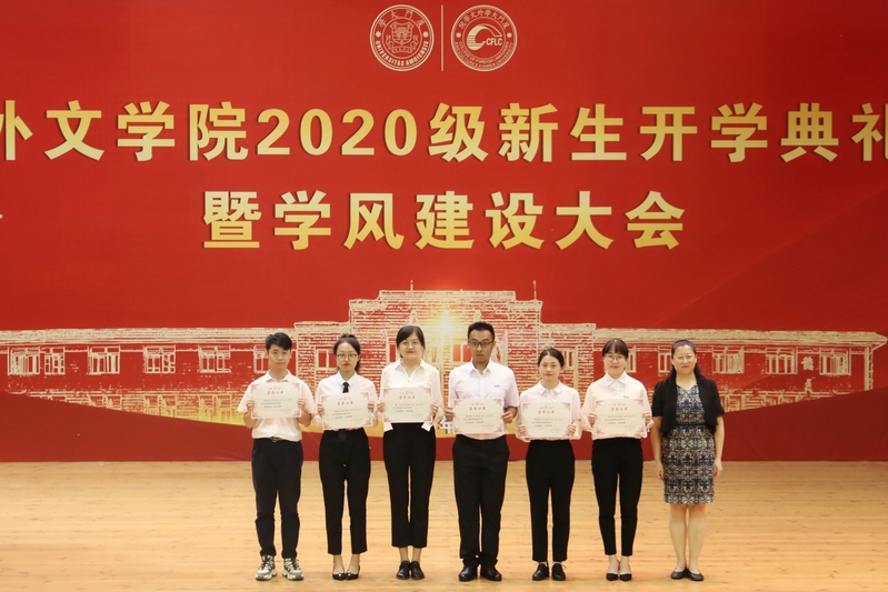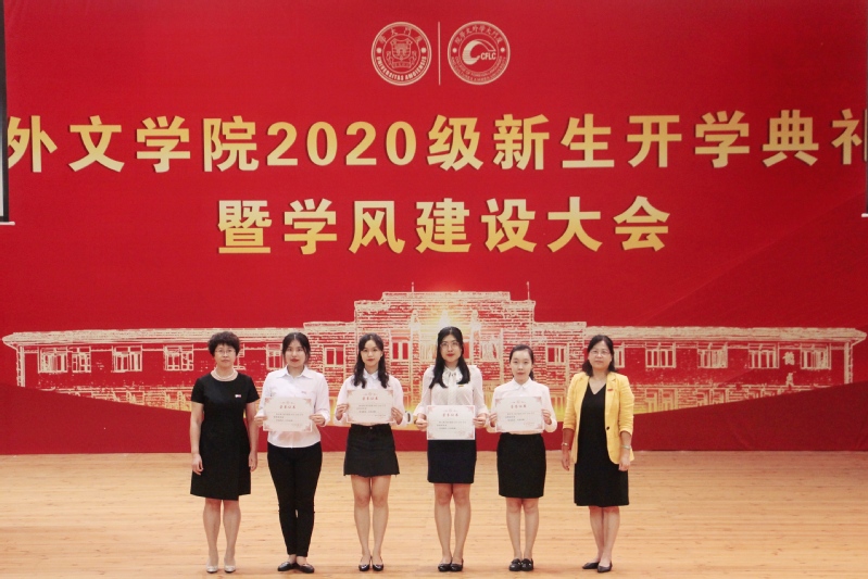 大会随后进入外文学院年度荣誉称号、奖学金与助学金颁发环节。沈丽秀副书记宣读2019-2020学年荣誉称号表彰决定,徐琪副院长宣读2019-2020学年奖学金颁发决定,辛志英副院长宣读2019-2020学年助学金颁发决定,在场领导老师及嘉宾依次为获奖者颁发证书。颁奖仪式不仅是对在过去一学年中努力拼搏、奋发向上的外文学子的肯定,更激励着新生们在未来志存高远,笃实好学,书写华章。