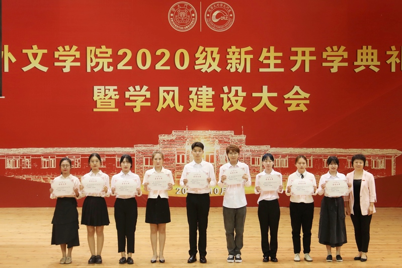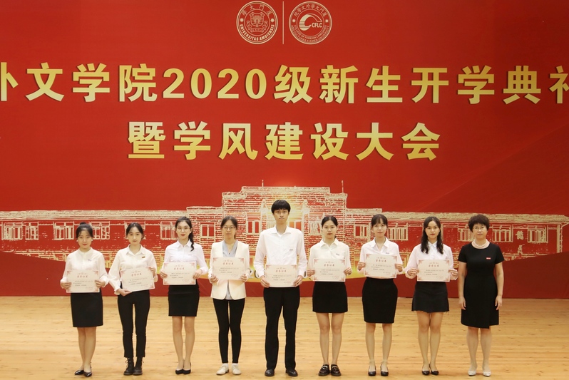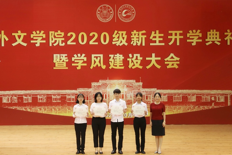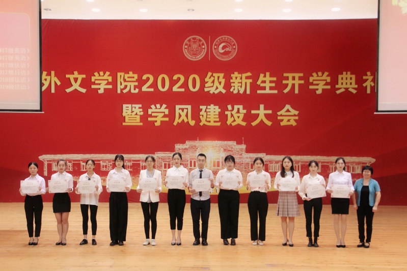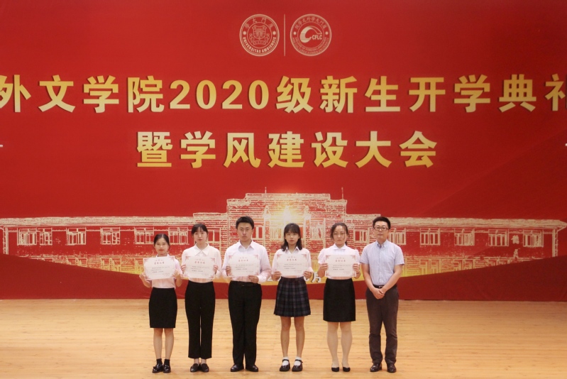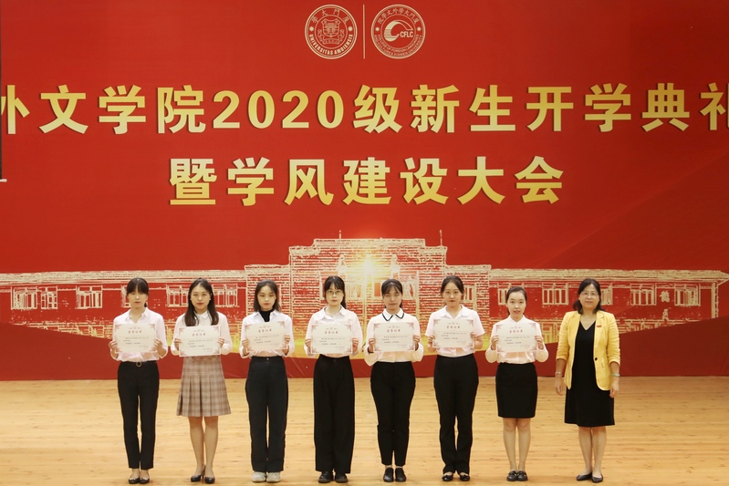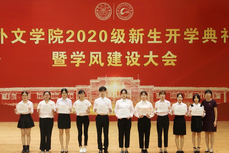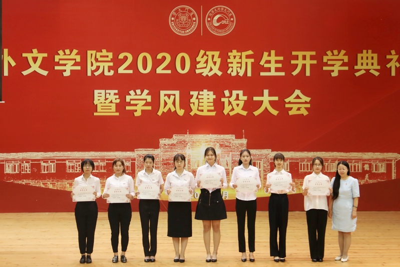 大会随后进入外文学院年度荣誉称号、奖学金与助学金颁发环节。沈丽秀副书记宣读2019-2020学年荣誉称号表彰决定,徐琪副院长宣读2019-2020学年奖学金颁发决定,辛志英副院长宣读2019-2020学年助学金颁发决定,在场领导老师及嘉宾依次为获奖者颁发证书。颁奖仪式不仅是对在过去一学年中努力拼搏、奋发向上的外文学子的肯定,更激励着新生们在未来志存高远,笃实好学,书写华章。
