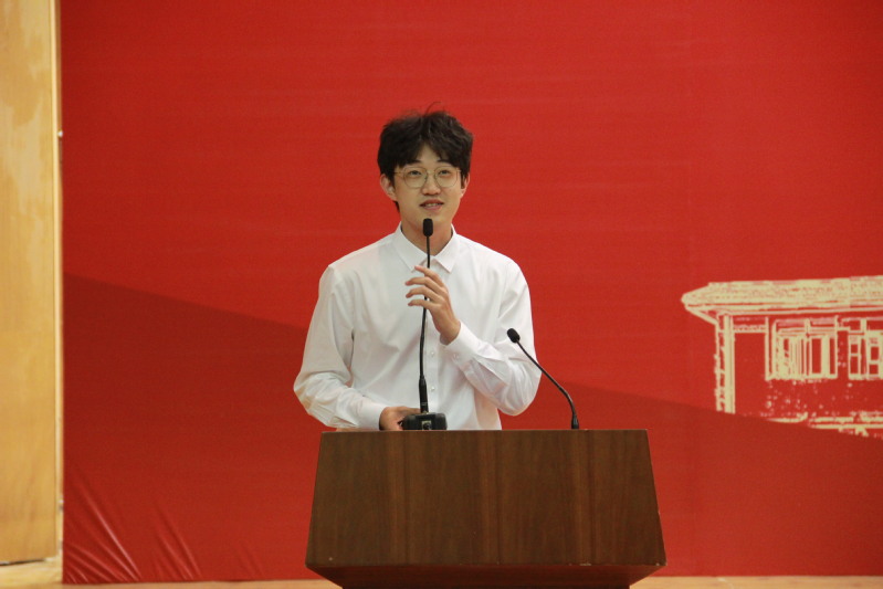 老生代表、2017级本科生李可欣,新生代表、英语口译专业硕士生刘子源依次上台发言。李可欣同学表示,作为外文学子,不但要夯实专业基础、感受语言魅力,更要做文化沟通的桥梁,讲好中国故事、传播中国声音。她还与大家分享了自己负责的“盲人电台”志愿服务项目获得全国志愿服务项目大赛金奖的经历,鼓励大家积极投身实践,做到知行合一、全面发展。刘子源同学则表达了对厦大的热爱和对未来生活的憧憬。他表示,在这样一个满怀希望、充满机遇的时代,奋斗与拼搏是青年的人生指南。他勉励在场新生共同努力,在人生新征程中既要勇于直面挑战、不负青春,更要立足华夏土壤,扬起理想之帆,追寻星辰大海。