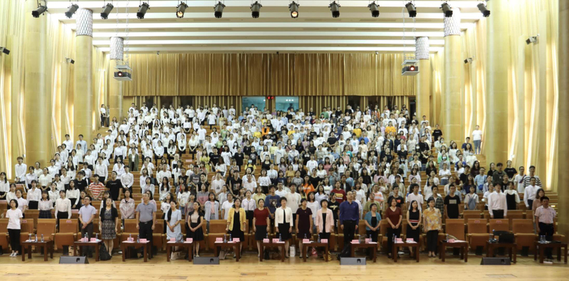 开学典礼在庄严的国歌声中拉开序幕。陈菁院长发表讲话。她首先对新生们的到来表示热烈欢迎,并与同学们分享了外文学科近百年的办学历程和取得的突出成就。她指出,学院始终致力于培养理想信念崇高、家国情怀浓厚、国际视野开阔、专业素养精深的外语人才,鼓励大家肩负起弘扬外文历史、传承外文文化、创造外文美好未来的光荣使命。同时,陈院长着眼“变化”二字,分析了当今世界局势,希望同学们作为外语类人才努力学会识变、应变和求变,从“锻造高境界、培养高视野”“成就好学问、熔铸好品行”“敬畏生命、善待自然”三方面表达了殷切希望。