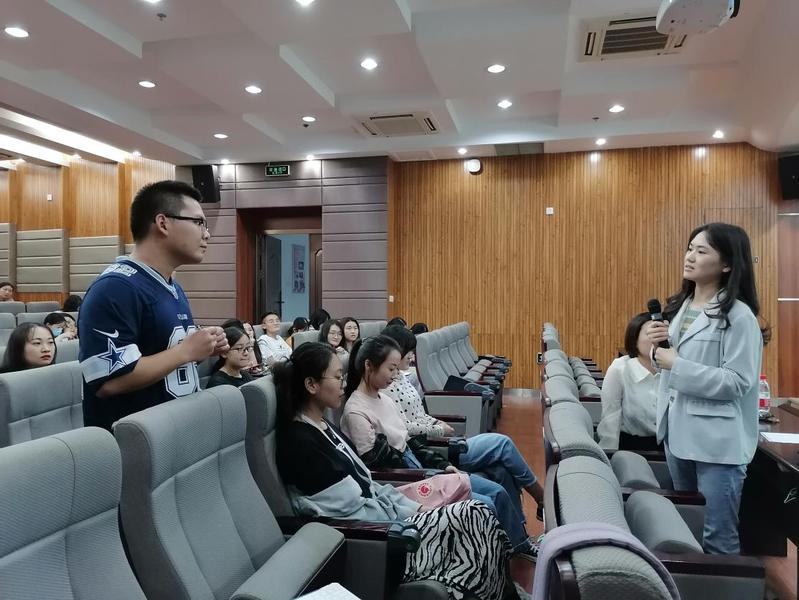 在交流环节,与会的同学积极发言,他们从学术论文、学习生活等角度向两位学姐提出了自己的疑问和困惑,学姐们结合自身经验给予了耐心解答,鼓励各位同学要多积累、多思考、多琢磨,努力找到自己感兴趣的研究方向。