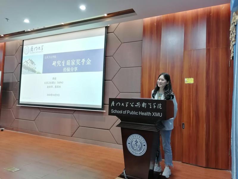 为进一步加强学院优良学风建设,营造良好的学术科研氛围,充分发挥优秀研究生的榜样力量,鼓励引导学生成长成才。10月9日晚七点半,公共卫生学院2020年研究生国家奖学金获奖者先进事迹分享会在曾宪梓楼101报告厅顺利举行,研究生国家奖学金获得者黄豆豆、芮佳及2020级研究生的参加了此次分享会。活动由兼职辅导员陈洁瑶主持。