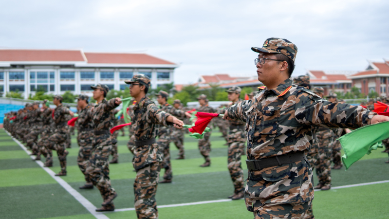 时光匆匆而过,军训汇报演出也迫在眉睫,同学们的训练也越发艰苦和严格。为了在阅兵式上发挥出最好的水平,每一个方阵、每一排队列、每一名同学都卯足了劲,尽全力统一步调,做好每一个动作,训练场上不断回响着的,是他们铿锵有力的口号声和整齐划一的脚步声。