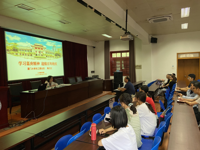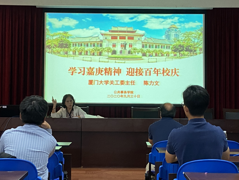 9月30日下午,厦门大学公共事务院特别邀请学校关工委主任陈力文在成智楼为2020级全体新生作“学习嘉庚精神,迎接百年校庆”专题讲座,讲座由公共事务学院党委副书记林盛铨主持。这是新生接受校情校史教育的重要一课,也是增强对学校精神文化认同感和归属感的重要途径。